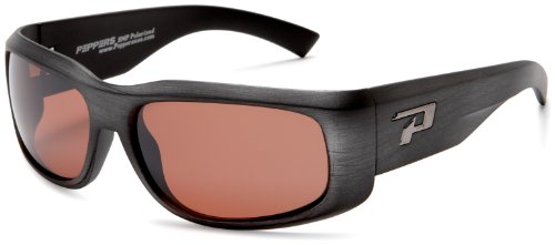 Peppers Sunglasses - The Boss / Frame: Brushed Steel Lens: Polarized Copper-Rose - Pepper's sunglasses The Boss features polarized lens handmade in Italy. Each frame is designed with a durable and lightweight grilamid frame made with spring hinges for a comfortable fit. The Boss is made with scratch & impact-resistant polarized polycarbonate lenses which eliminate glare, ensure 100% UVA/UVB protection and provide crisp optical clarity.